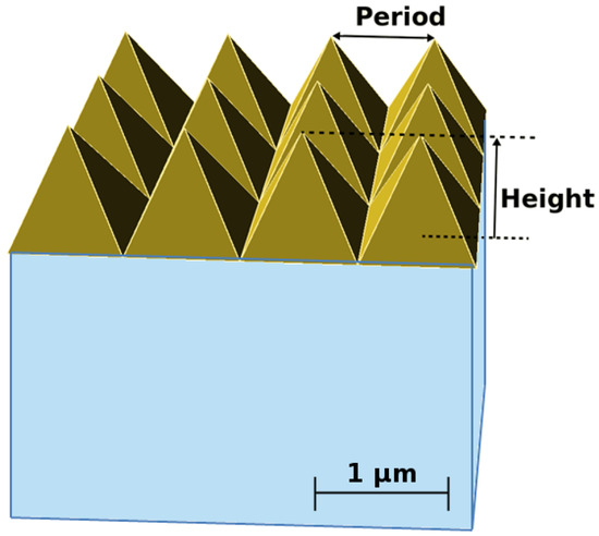 (RI = 2.5), 700 nm period and 1.5 µm height, applied to an 10 × 10 × 10 mm