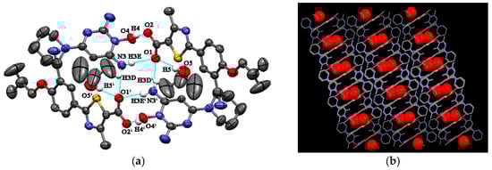 (a) Hydrogen bond interactions observed in FEB-MIN·IPA; (b) the channels occupied by isopropanol (IPA) molecules.