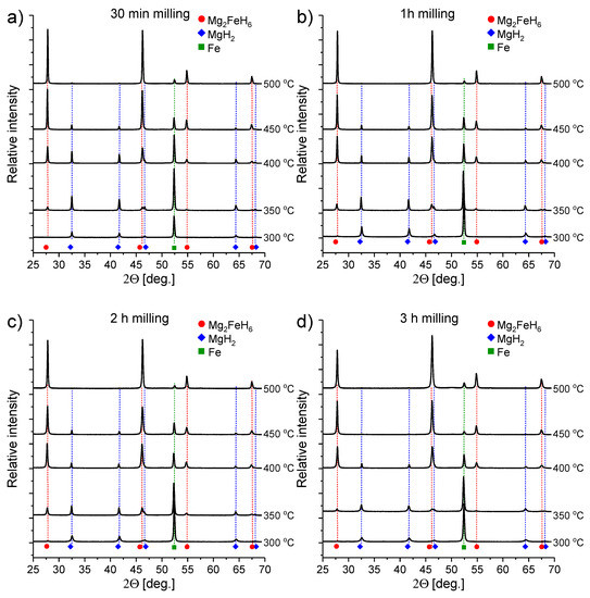 - Fadonougbo, J.O.; Jung, J.Y.; Suh, J.Y.; Lee, Y.S.; Shim, J.H.; Cho, Y.W. Low temperature formation of Mg2FeH6 by hydrogenation of ball-milled nano-crystalline powder mixture of Mg and Fe. Mater. Des. 2017, 135, 239–245. [Google Scholar] [CrossRef]