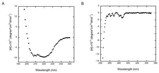 Circular dichroism spectra of Bcp1 in the far- (A) and near-UV (B).