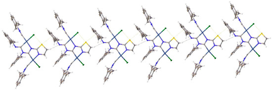 Intermolecular S•••π CBs in crystal structures of 3a and 3b lead to the formation of one-dimensional (1D) chains (Figure 3). These interactions in both structures are also supported by the intermolecular C–H•••N hydrogen bonds (HBs) and their parameters (Table 2) are consistent with the IUPAC criterion [95].