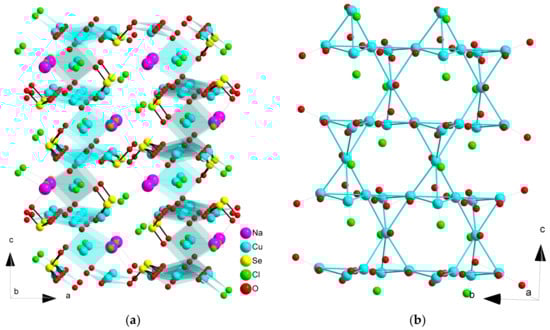 - Zhang, D.; Berger, H.; Kremer, R.K.; Wulferding, D.; Lemmens, P.; Johnsson, M. Synthesis, Crystal Structure, and Magnetic Properties of the Copper Selenite Chloride Cu5(SeO3)4Cl2. Inorg. Chem. 2010, 49, 9683–9688. [Google Scholar] [CrossRef] [PubMed]