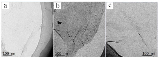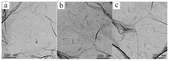 TEM images of PE21M/RGO nanocomposites produced at different SC CO2 pressures: (a) 10 MPa, (b) 15 MPa, and (c) 20 MPa in p-xylene at 60 °C for 3 h.