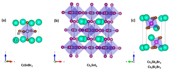 - Dolzhnikov, D.S.; Wang, C.; Xu, Y.D.; Kanatzidis, M.G.; Weiss, E.A. Ligand-Free, Quantum-Confined Cs2SnI6 Perovskite Nanocrystals. Chem. Mater. 2017, 29, 7901–7907. [Google Scholar] [CrossRef]