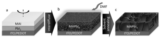 - Burschka, J.; Pellet, N.; Moon, S.-J.; Humphry-Baker, R.; Gao, P.; Nazeeruddin, M.K.; Grätzel, M. Sequential deposition as a route to high-performance perovskite-sensitized solar cells. Nature 2013, 499, 316–319. [Google Scholar] [CrossRef] [PubMed]