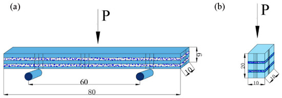 Test model diagram. (a) Loading in the Z-direction three-point bending diagram and (b) a compression diagram.