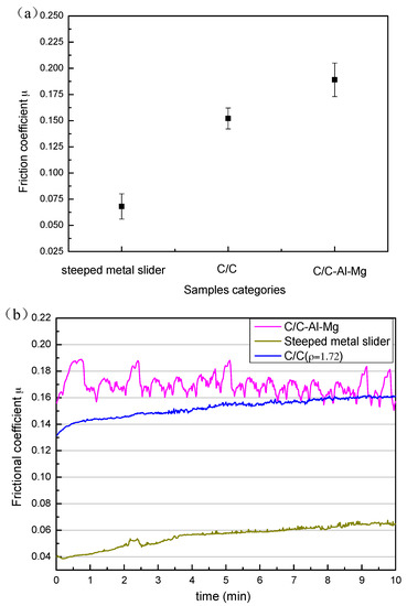 - The friction coefficient of the steeped metal slide composite was 0.068 whereas that of C/C composite was 0.152. When the Al–Mg alloy infiltrated the C/C composites, the friction coefficient increased from 0.152 to 0.189.
