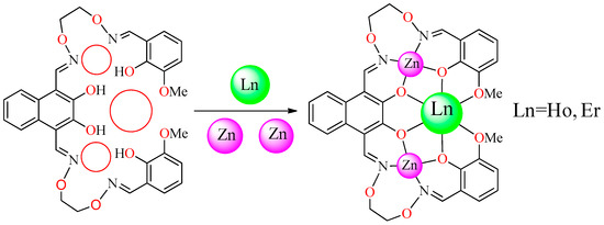 Recently, some Salamo-type lanthanide complexes have been reported to perform excellent fluorescence properties [21,24,32]. ZnII components have been applied as lanthanide fluorescence sensitizers.