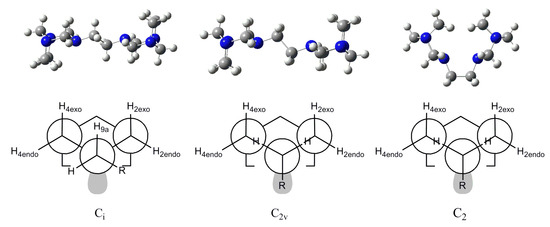 - Gogoll, A.; Grennberg, H.; Axén, A. Chemical shift assignment of geminal protons in 3,7-diazabicyclo[3.3.1]nonanes: An unexpected deviation from the axial/equatorial chemical shift order. Magn. Reson. Chem. 1997, 35, 13–20. [Google Scholar] [CrossRef]