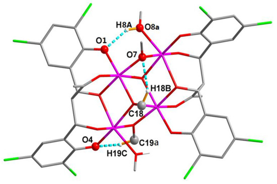 Part of intramolecular C–H···O hydrogen-bonding interactions in MnIII complex 1 (symmetry code: a = 1 − x, 1 − y, 1 − z).