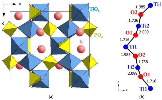 - Yashima, M.; Komatsu, T. Order–disorder and displacive components in the ferroelectric–paraelectric phase transition of potassium titanyl phosphate KTiOPO4. Chem. Commun. 2009, 1070–1072. [Google Scholar] [CrossRef] [PubMed]