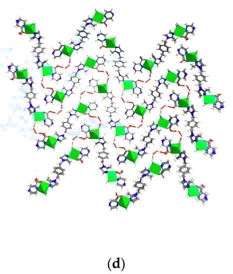 - Shi, L.L.; Zhang, Y.Q.; Han, S.S.; Yang, Z.; Zhu, L.M.; Li, B.L.; Li, H.Y. Syntheses, structures, properties of a series of coordination polymers with flexible bis(imidazole) and dicarboxylate ligands. Polyhedron 2017, 133, 82–91. [Google Scholar] [CrossRef]