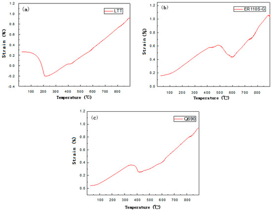 The martensitic phase transformation of LTT starts at 212 °C and finishes at around 50 °C, and the expansion caused by phase transition is about 0.48%, which is much higher than that of the base metal (0.15%) and ER110S-G (0.18%).
