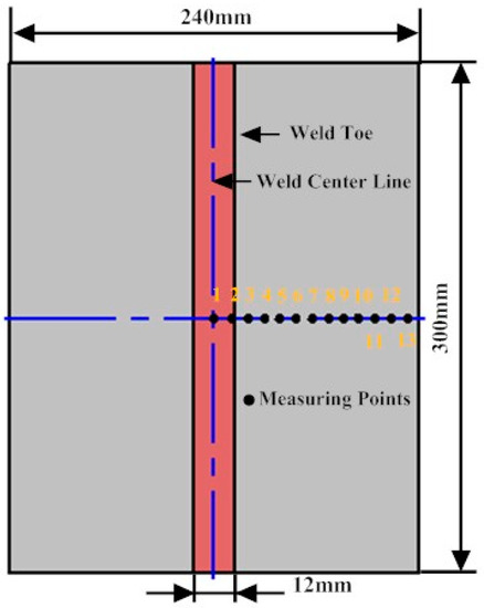 The experiment uses metal active gas welding (MAG) and the sample size is 300 × 120 × 10 mm, as shown in