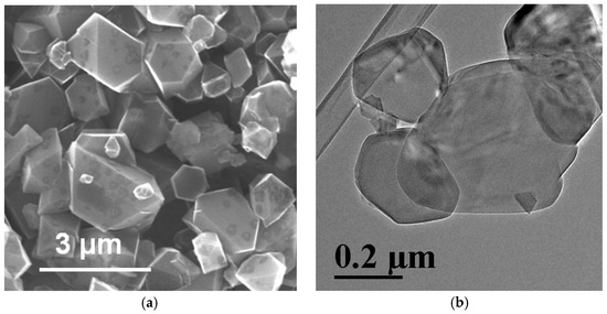 Crystal morphology was studied using microscopes SEM JSM-6390 JEOL (JEOL Ltd., Tokyo, Japan) and TEM JEM-2100 JEOL (JEOL Ltd., Tokyo, Japan) with accelerating voltage of 200 kV.