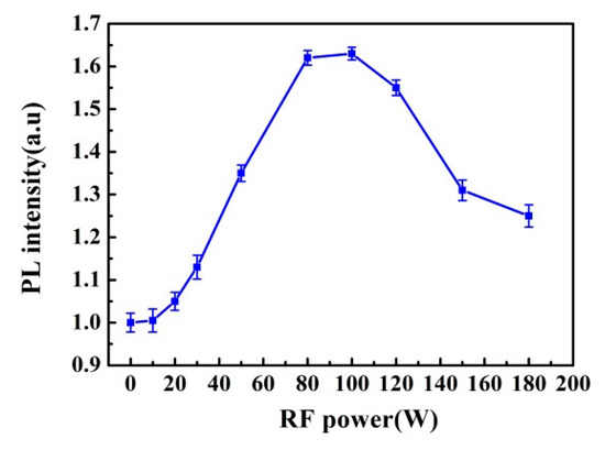 The influence of radio frequency (RF) power on photoluminescence (PL) intensity.