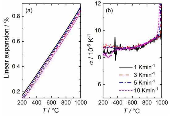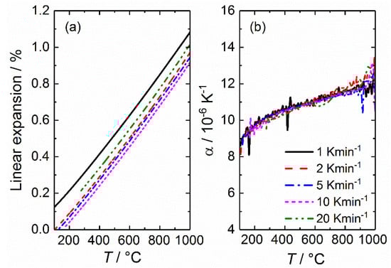 3.6. Assessment of the Influence of Heating Rate on the Thermal Expansion Coefficient—Experimental Details