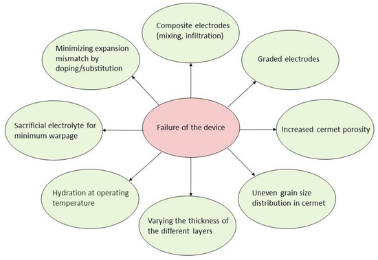 - Anandakumar, G.; Li, N.; Verma, A.; Singh, P.; Kim, J.H. Thermal stress and probability of failure analyses of functionally graded solid oxide fuel cells. J. Power Sources 2010, 195, 6659–6670. [Google Scholar] [CrossRef]