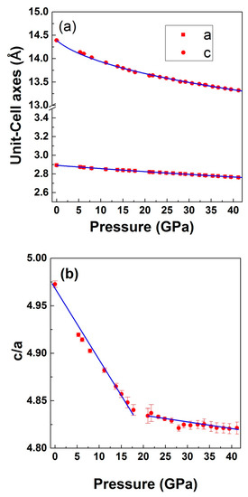 - Pellicer-Porres, J.; Segura, A.; Ferrer-Roca, C.; Martínez-García, D.; Sans, J.A.; Martínez, E.; Itié, J.P.; Polian, A.; Baudelet, F.; Muñoz, A.; et al. Structural evolution of the CuGaO2 delafossite under high pressure. Phys. Rev. B 2004, 69, 024109. [Google Scholar] [CrossRef]