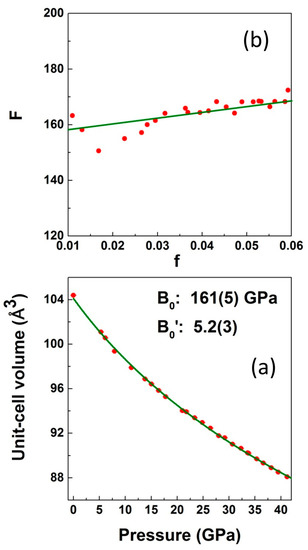 - Dewaele, A.; Loubeyre, P.; Mezouar, M. Equations of state of six metals above 94 GPa. Phys. Rev. B 2004, 70, 094112. [Google Scholar] [CrossRef]