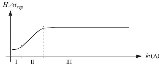Sketch of the characteristic behavior at indentation []. The indentation hardness H divided by the representative stress σrep is plotted against the non-dimensional strain parameter Λ. The different levels at indentation are indicated.