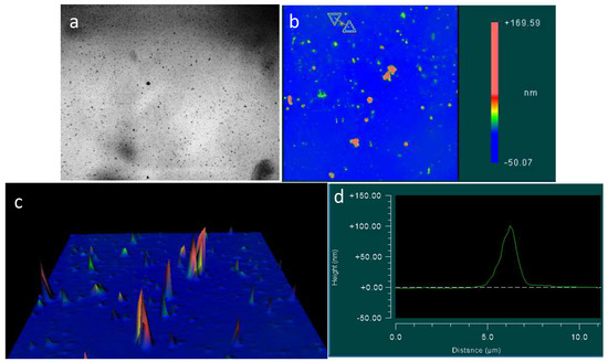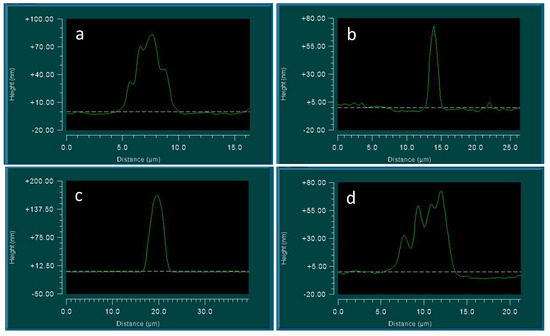 Considering the water on the surface of the slide, we could notice that the dry glass surface is completely covered with flat circular formations having a dark particle in the center. This pattern did not disappear when treated with water and alcohol, or after trying to wipe it with a napkin. However, this pattern was not visible on the surface of the hydrophobic plastic. Study under interference microscope showed that the “dark spots” in the center of the circles represent crystal structures with an average width of 3–5 microns and a height of 80–200 nm (Figure 7 and Figure 8).