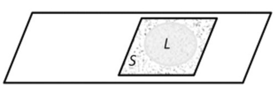Area of microscopic observations (S) between the objective and coverslip after the partial evaporation of the liquid phase (L) through the air-bound boundaries.