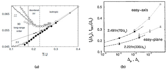 - Ihle, D.; Schindelin, C.; Fehske, H. Magnetic Order in the Quasi-Two-Dimensional Easy-Plane XXZ Model. Phys. Rev. B 2001, 64, 054419. [Google Scholar] [CrossRef]