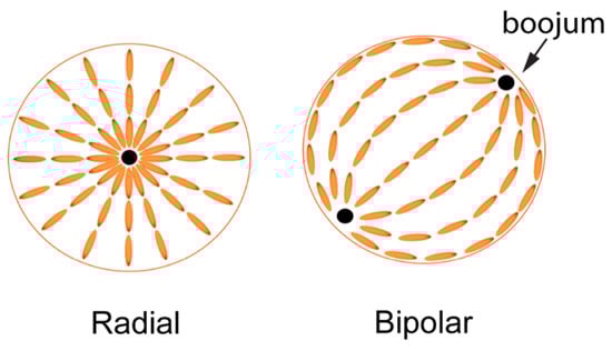 - Cairns, D.R.; Sibulkin, M.; Crawford, G.P. Switching dynamics of suspended mesogenic polymer microspheres. Appl. Phys. Lett. 2001, 78, 2643–2645. [Google Scholar] [CrossRef]