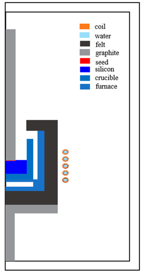 - Yamamoto, T.; Adkar, N.; Okano, Y.; Ujihara, T.; Dost, S. Numerical investigation of the transport phenomena occurring in the growth of SiC by the induction heating TSSG method. J. Cryst. Growth 2017, 474, 50–54. [Google Scholar] [CrossRef]