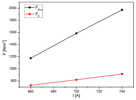 3.2. Distribution of the Buoyancy and Electromagnetic Force