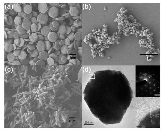 - Li, F.; Ding, Y.; Gao, P.X.X.; Xin, X.Q.; Wang, Z.L. Single-cystal hexagonal disks and rings of ZnO: Low-temperature, large-scale synthesis and growth mechanism. Angew. Chem. Int. Edit. 2004, 43, 5238–5242. [Google Scholar] [CrossRef]