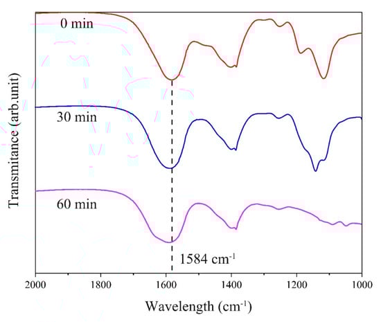 FT-IR spectrum of OS products at 0, 30, and 60 min.