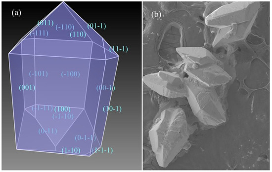 - Prywer, J. Morphological importance of crystal faces in connection with growth rates and crystallographic structure of crystal. Cryst. Growth Des. 2002, 2, 281–286. [Google Scholar] [CrossRef]