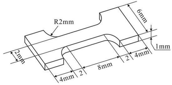 The dimensions of the tensile sample.