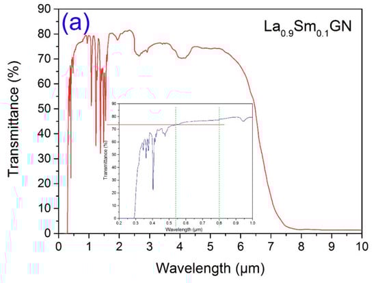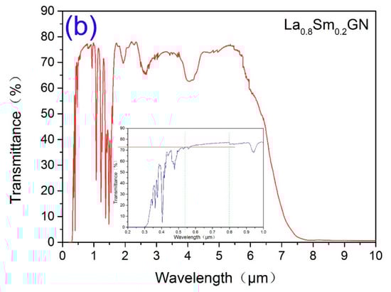 The transmission spectra of Sm:LGN crystals: (a) La0.9Sm0.1GN and (b) La0.8Sm0.2GN.