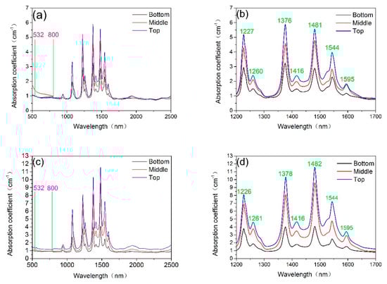 The absorption spectra of Sm:LGN crystals: (a) and (b) La0.9Sm0.1GN; (c) and (d) La0.8Sm0.2GN.