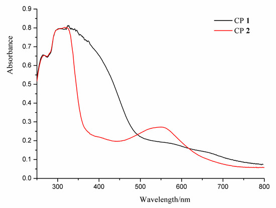 The UV–vis spectra for the CPs 1–2.
