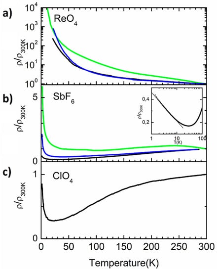 - Prokhorova, T.G.; Yagubskii, E.B.; Zorina, L.V.; Simonov, S.V.; Zverev, V.N.; Shibaeva, R.P.; Buravov, L.I. Specific Structural Disorder in an Anion Layer and Its Influence on Conducting Properties of New Crystals of the (BEDT-TTF)4A+[M3+(ox)3]G Family, Where G Is 2-Halopyridine; M Is Cr, Ga; A+ Is [K0.8(H3O)0.2]+. Crystals 2018, 8, 92. [Google Scholar] [CrossRef]