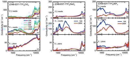 - Dressel, M.; Drichko, N. Optical Properties of Two-Dimensional Organic Conductors: Signatures of Charge Ordering and Correlation Effects. Chem. Rev. 2004, 104, 5689–5716. [Google Scholar] [CrossRef] [PubMed]