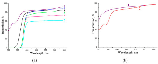 The crystals transmission spectra study in the wavelength range of 200–900 nm was performed with the automatic two-channel spectrophotometer Cary 300 UV–VIS (Agilent Technologies, Santa Clara, CA, USA). The samples of 10 × 10 × 10 mm3 were prepared; their working faces were subjected to mechanical grinding and polishing.