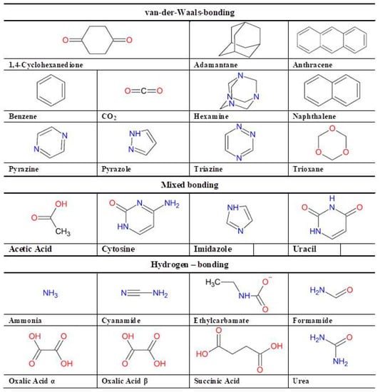 - Hoja, J.; Reilly, A.M.; Tkatchenko, A. First-principles modeling of molecular crystals: Structures and stabilities, temperature and pressure. Wiley Interdiscip. Rev. Comput. Mol. Sci. 2017, 7, e1294. [Google Scholar] [CrossRef]