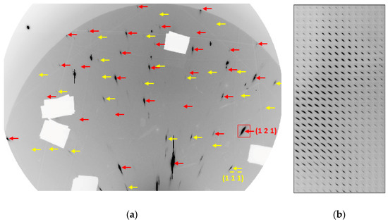 Figure 3b). Such composite frames reproduce the shapes of single crystals and, at the same time, variations in the shapes and positions of diffraction spots across the sample are also clearly visible, indicating deformation of the crystals. The composite images are currently visualized with Fit2d.