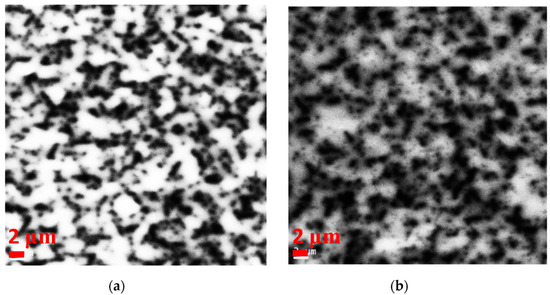 Then, we present an in-depth approach to analyze the non-radiative recombination in the MQW region by the cathodoluminescence (CL) system. The CL spectra of these three LEDs (not shown here) include a weaker GaN near-band-edge (NBE) emission (i.e., 365 nm), a stronger InGaN/GaN MQWs emission (i.e., 450 nm), and a broad yellow band (YL) emission (i.e., 550 nm). Figure 4a,b shows the CL mapping images of the LED I and III recorded at an MQW emission wavelength of 450 nm, respectively. It is clearly evident that LED I has more light spots than LED III. According to the literature, the V-defects in the MQW can act as non-radiative recombination centers and generate the dark areas in the CL images [21,22]. The results obtained demonstrate that LED III has a greater V-defect density and larger leakage current, which also corresponds to the results of Figure 2 and Figure 3. This could be attributed to the fact that the growth temperature of the quantum barriers was 110 °C higher than that of the quantum wells. In order to suppress the generation of V-pits in the MQWs and enhance the carrier confinement capability of MQWs, the growth temperature of the quantum barrier was higher than that of QW, and growth rate of the quantum barrier was decreased. However, if the growth temperature and rate of the quantum barrier are too high and low, respectively, the indium fluctuation effect [23,24] in the MQWs can be induced, which will result in the defect generation (i.e., non-radiative recombination centers) and crystal quality degradation of the MQWs. On the basis of the above, we choose a compromise, which is the reduction of the growth time (i.e., increase the barrier growth rate appropriately) at 910 °C. LED I increases the barrier growth rate appropriately (i.e., still able maintain a good-quality crystal of the barrier–well heterointerfaces in the MQWs) and reducing the barrier growth time in the high-temperature environment can reduce the thermal budget to mitigate the effect of indium fluctuation. According to the equation of the recombination rate for LEDs (i.e., R = An + Bn2 + Cn3), the Shockley–Read–Hall (SRH) recombination (An) and the radiative recombination (Bn2) are dominant recombination mechanisms at a lower current injection density. Such a result evidences that the LOP and EQE of LED I in Figure 1 are the best at lower injection currents.