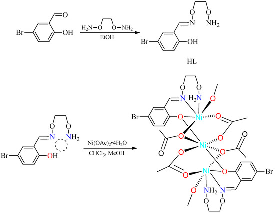 - Li, X.Y.; Kang, Q.P.; Liu, L.Z.; Ma, J.C.; Dong, W.K. Trinuclear Co(II) and mononuclear Ni(II) salamo-type bisoxime coordination compounds. Crystals 2018, 8, 43. [Google Scholar] [CrossRef]