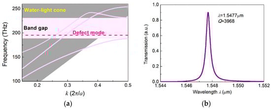 - Akahane, Y.; Asano, T.; Song, B.S.; Noda, S. High-Q Photonic Nanocavity in a Two-Dimensional Photonic Crystal. Nature 2003, 425, 944–947. [Google Scholar] [CrossRef]