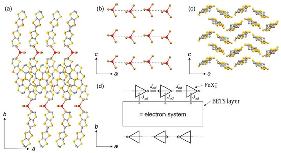 - Mori, T.; Katsuhara, M. Estimation of πd-interaction in organic conductors including magnetic anions. J. Phys. Soc. Jpn. 2002, 71, 826–844. [Google Scholar] [CrossRef]