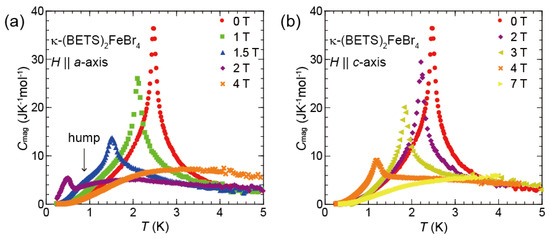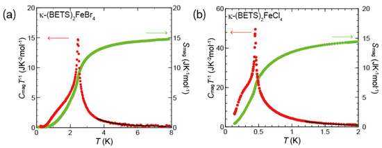 Fukuoka, S.; Fukuchi, S.; Akutsu, H.; Kawamoto, A.; Nakazawa, Y. Magnetic and Electronic Properties of π-d Interacting Molecular Magnetic Superconductor κ-(BETS)2FeX4 (X = Cl, Br) Studied by Angle-Resolved Heat Capacity Measurements. Crystals 2019, 9, 66. https://doi.org/10.3390/cryst9020066