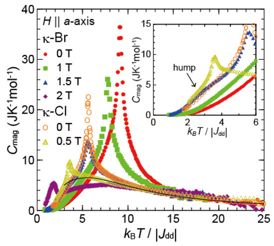 - Fukuoka, S.; Yamashita, S.; Nakazawa, Y.; Yamamoto, T.; Fujiwara, H.; Shirahata, T.; Takahashi, K. Thermodynamic properties of antiferromagnetic ordered states of π-d interacting systems of κ-(BETS)2FeX4 (X = Br, Cl). Phys. Rev. B 2016, 93, 245136. [Google Scholar] [CrossRef]