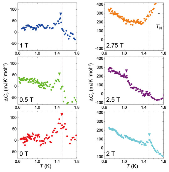 - Sorai, M.; Nakazawa, Y.; Nakano, M.; Miyazaki, Y. Calorimetric investigation of phase transitions occurring in molecule-based magnets. Chem. Rev. 2013, 113, PR41–PR122. [Google Scholar] [CrossRef] [PubMed]